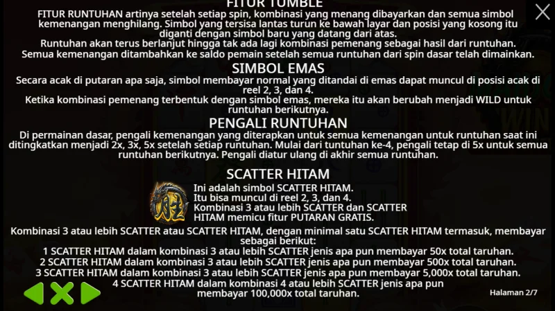 - Fitur Tumble, merupakan fitur Dimana symbol tertentu akan turun kebawah saat anda mendapatkan kemenangan untuk mengisi kekosongan slot dari symbol yang anda menangkan tersebut.